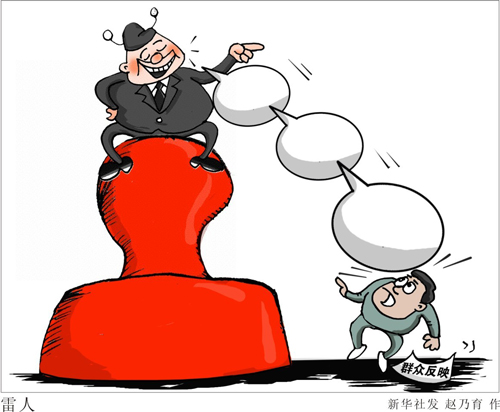 其二,遮丑關。“家丑不可外揚”思維作祟,怕違法亂紀行為曝光影響地方形象而護短、包庇。在不少侵害群眾利益的行為中,一些政府部門或多或少充當了幫兇。只要群眾忍氣吞聲,這些行為就不了了之。一旦群眾投訴引發輿論關注,當地政府害怕曝光影響地方形象甚至“烏紗帽”,就派出各路人馬“游說”。這些干部接待上訪群眾時先表示同情和理解,再以“大局意識”進行說教,最終提出賠錢了事。一旦“說不通”,就“放狠話”“玩拖延”,甚至威脅。