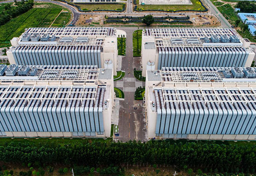 這是位于呼和浩特市和林格爾縣境內的中國電信云計算內蒙古信息園(2017年7月27日無人機拍攝)。中國電信云計算內蒙古信息園具有120萬臺服務器以上的云計算服務能力,百度、阿里、騰訊、搜狗等眾多企業入駐。新華社記者 連振 攝