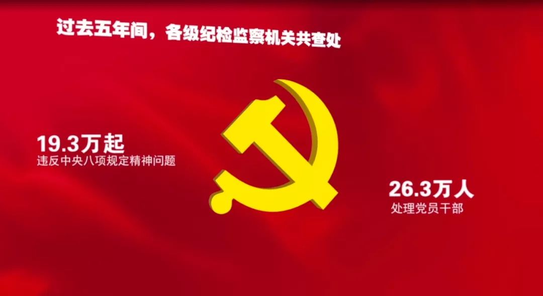 過去五年間,各級紀檢監察機關共查處違反中央八項規定精神問題19.3萬起,處理黨員干部26.3萬人。