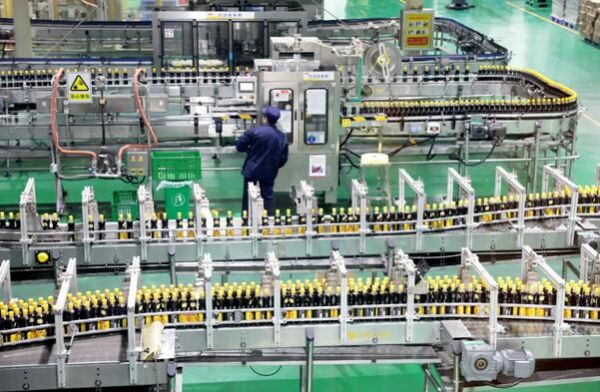 圖為山東魯花“自然鮮”醬香醬油生產線