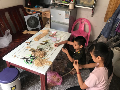 婉婷姐弟2年前從廣東梅州來到廣州生活學(xué)習(xí),和在此務(wù)工的父母團聚。姐弟倆告訴記者,周末不上學(xué)的時候,他們平均每天要做1000個左右的小飾品,一個賺2分錢。