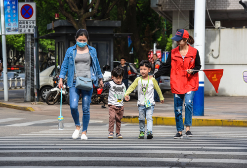 志愿者在城市路口協(xié)助指揮交通 徐昱 攝