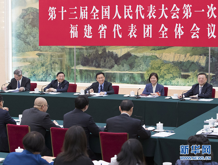 3月8日,中共中央政治局常委韓正參加十三屆全國人大一次會議福建代表團的審議。 新華社記者 王曄 攝